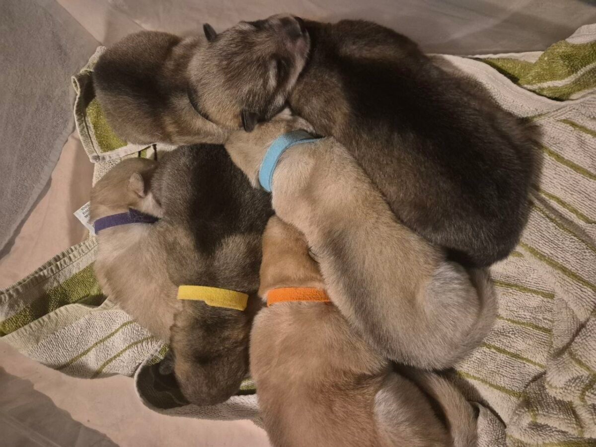 In de loop van de dag van 15 februari heeft Dame Liadrin (Ada) wolfhond)) het leven geschonken aan zes pups. Het zijn vijf reutjes en een teefje met geboorte gewichten tussen de 500 en 650 gram.
